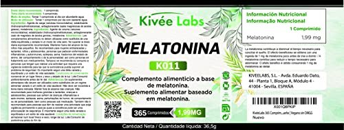 - Melatonina pura 1,99 mg Bucodispersable de KivéeLabs es un suplemento indicado para el tratamiento del insomnio o trastorno del sueño.